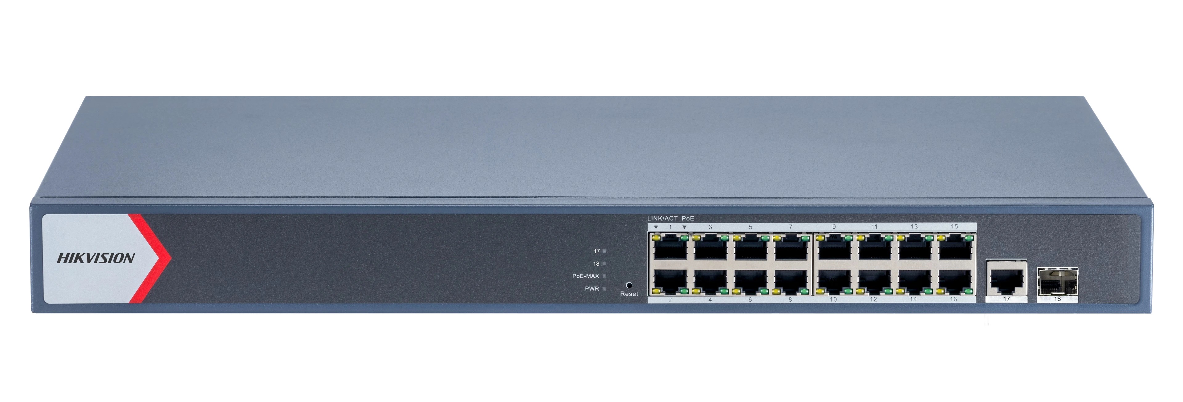Switch POE manageable, 16 ports POE 10/100/1000, gestion par WEB, Distance jusqu'à 300 mètres,1 × Gigabit RJ45 port, and 1 × Gigabit SFP fiber optical port, puissance 130Watts HIKVISION